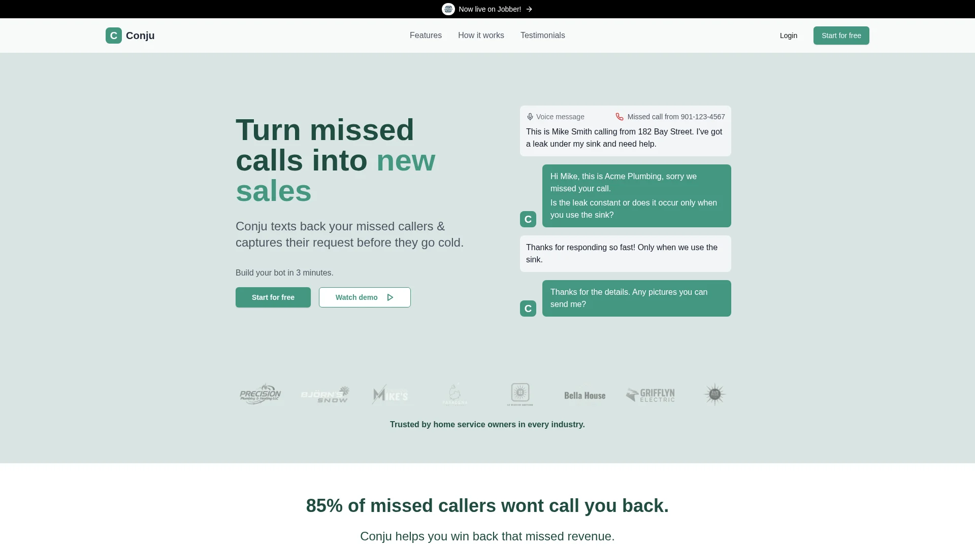 Small businesses can use Conju to turn missed calls into new sales