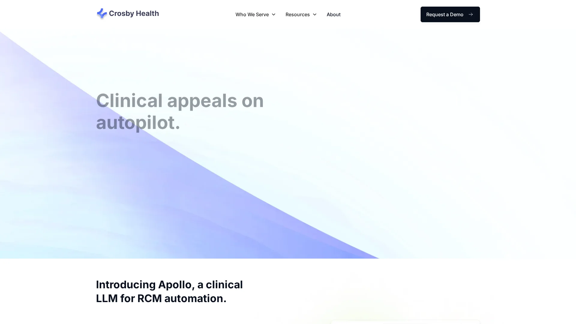 About Crosby Health : Crosby Health is an innovative platform providing turnkey clinical appeals for the healthcare industry. They empower hospitals, health systems, private practices, and revenue cycle management providers to efficiently navigate the complex process of clinical appeals.