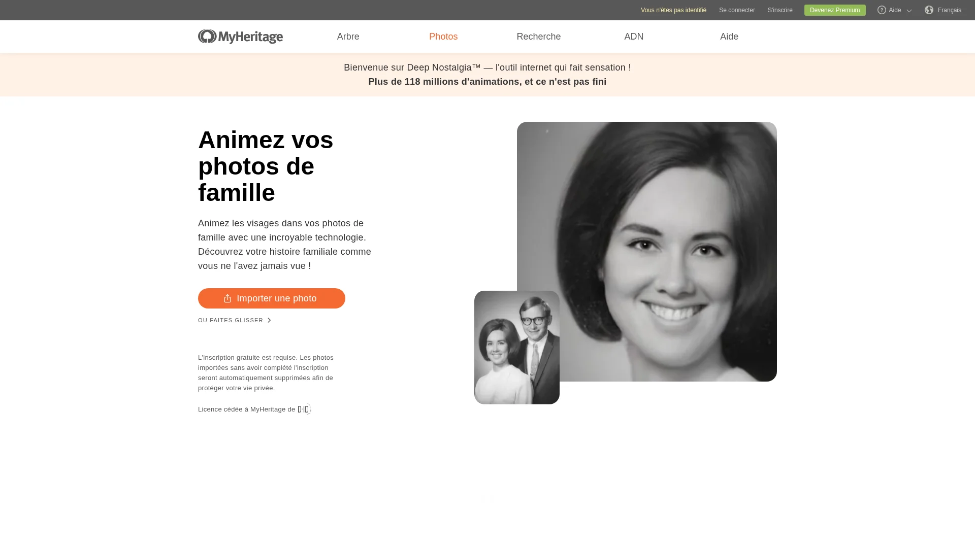 About Deep Nostalgia : Deep Nostalgia est une technologie d'apprentissage profond pour animer les visages des photos de famille en utilisant MyHeritage, créant des séquences vidéo réalistes de haute qualité. Cela ressuscite vos souvenirs.