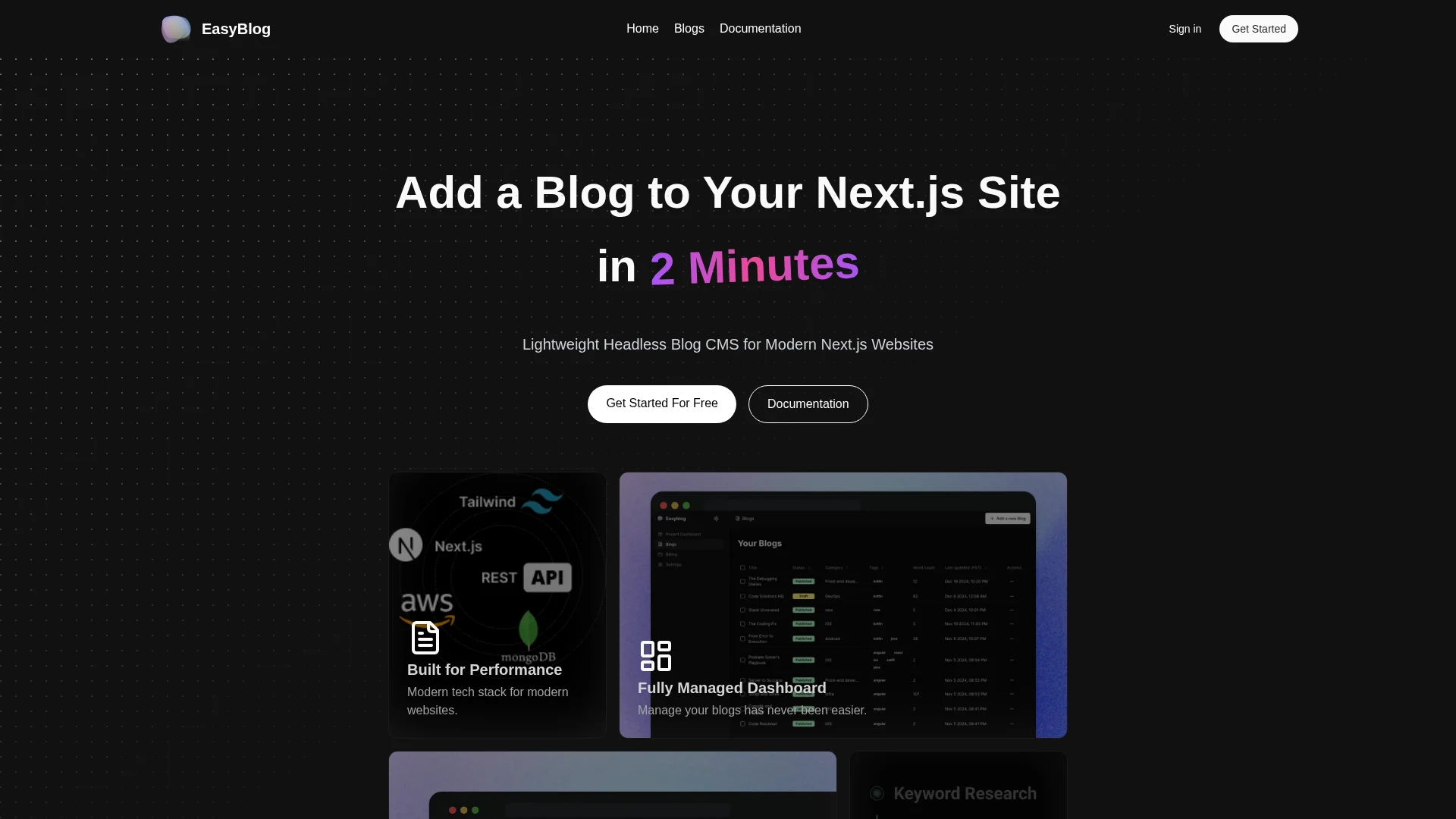 About Easyblog : EasyBlog is a Next.js utility for building basic blogs. It simplifies the process of creating blog functionality with ease.