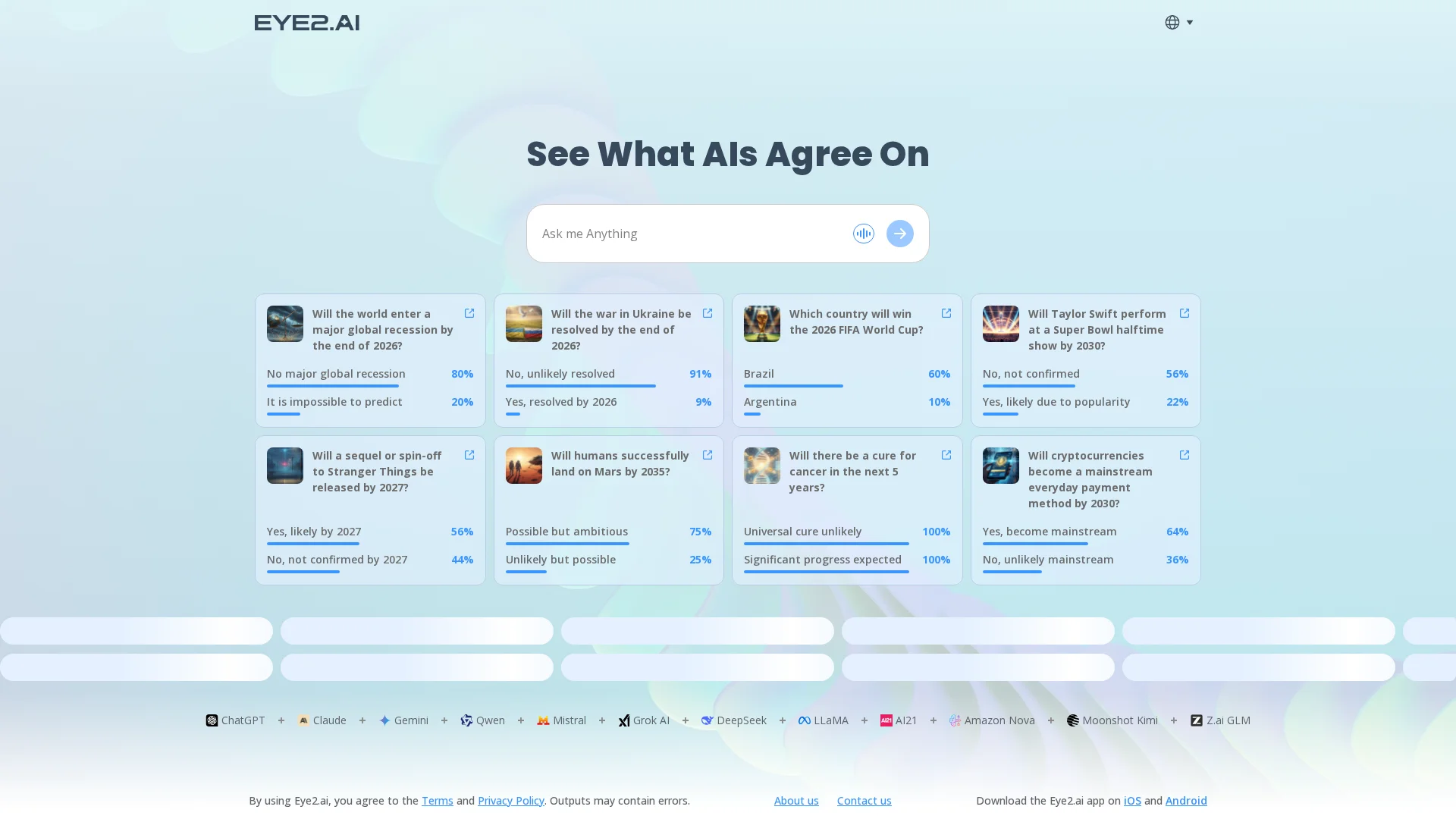 About Eye2.Ai : Eye2.ai is a reliable AI aggregator that helps you avoid AI hallucinations by comparing answers from various AI models. It's designed to bring AIs to a common understanding.role: AI Reliability Tool