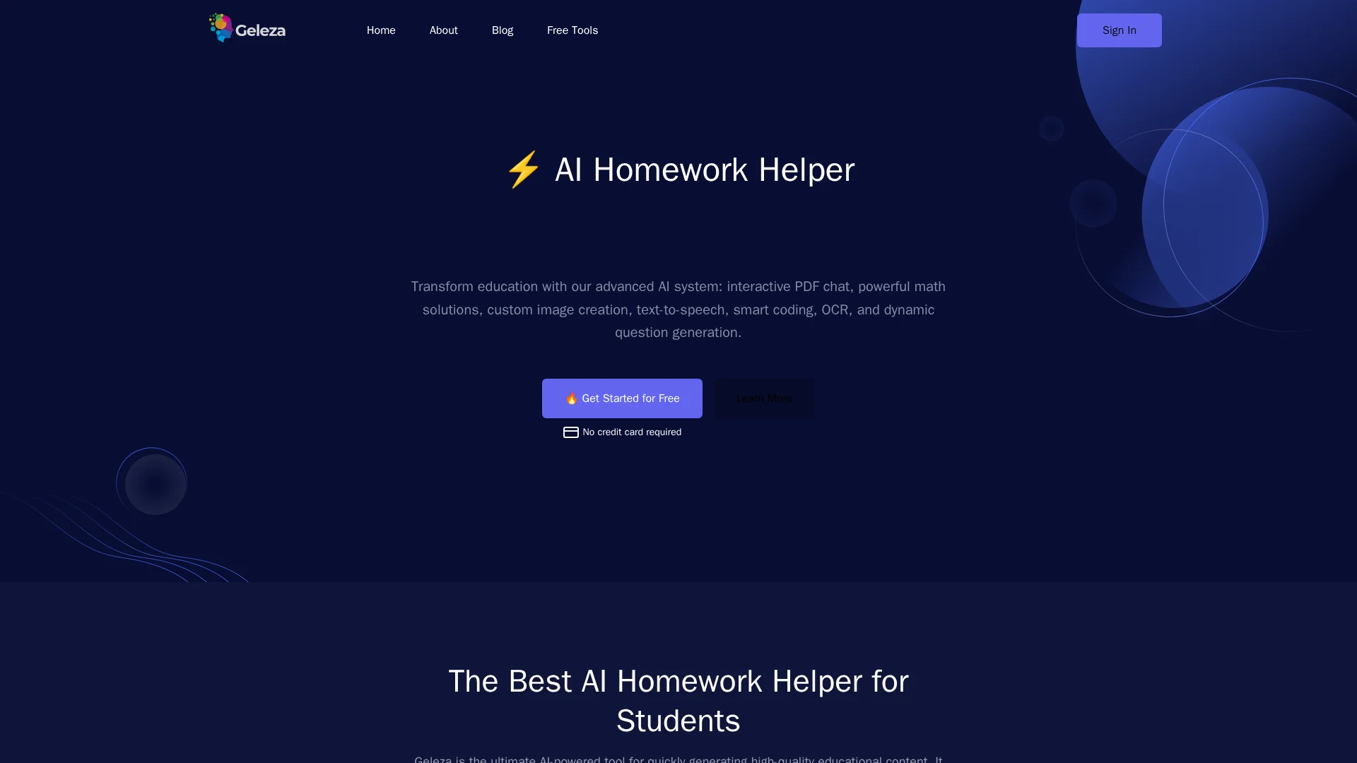 About Geleza : Geleza.app is an AI-powered education tool designed to assist students with homework and other academic tasks. It offers features such as interactive PDFs, math solutions, and text-to-speech functionality.