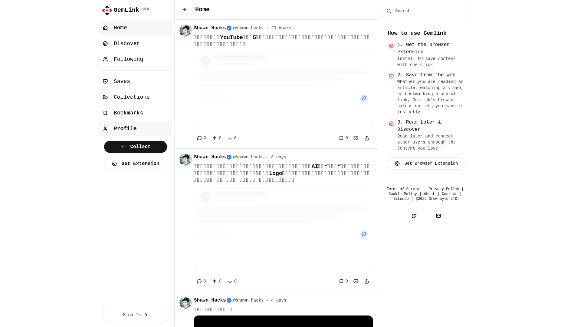About Gemlink : Save anything from the web with a single click. A social bookmark manager like Pocket, with a Twitter-like layer for sharing and connecting through content.