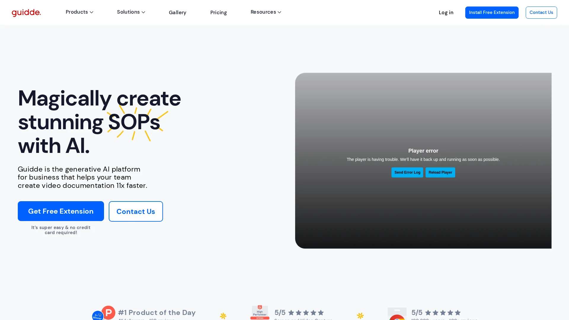 Guidde lets you capture instant step-by-step videos and documents for anyone to create.