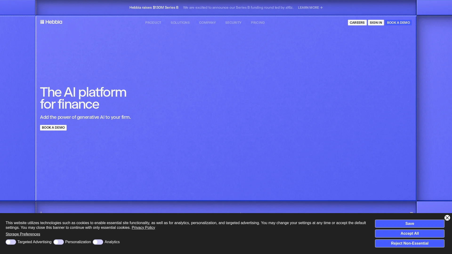 About Hebbia Ai : Hebbia Ai is a leading AI platform for finance, empowering asset managers, investment banks, law firms, and Fortune 500 companies with advanced tools for analysis, decision-making, and content generation.categories: ['Business', 'Finance']