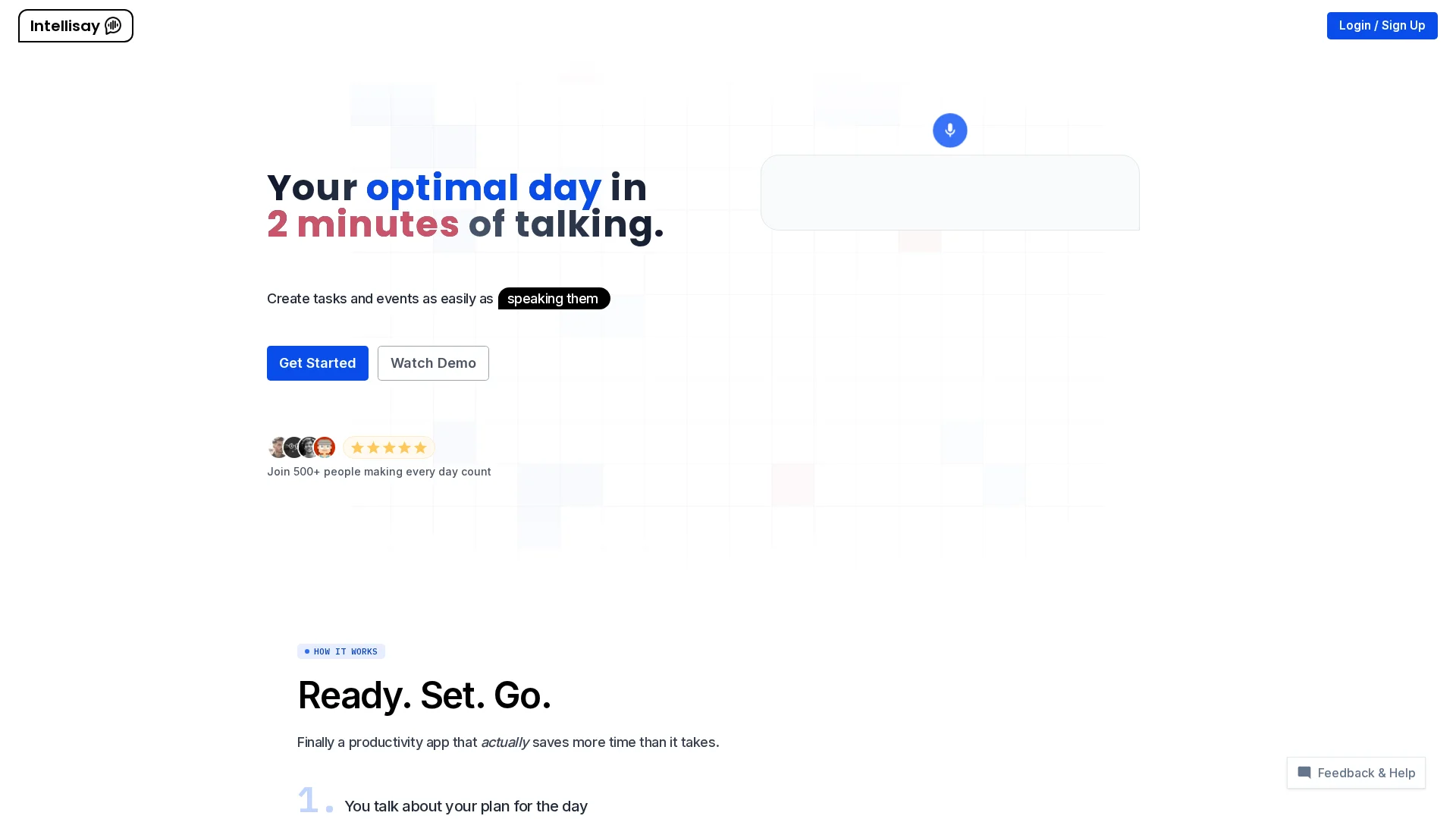 About Intellisay Ai : Intellisay AI is a productivity tool that helps users summarize their day and prioritize tasks effectively.