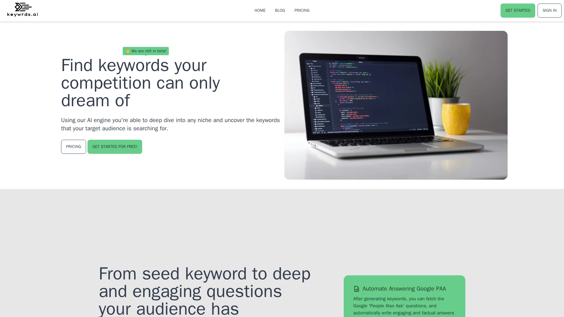 About Keywrds Ai : Discover the most effective keywords your competitors can't find. Leveraging advanced AI technology, Keywrds.ai provides unparalleled insights into your target audience's search behavior, enabling you to dominate your niche and outshine your competition.