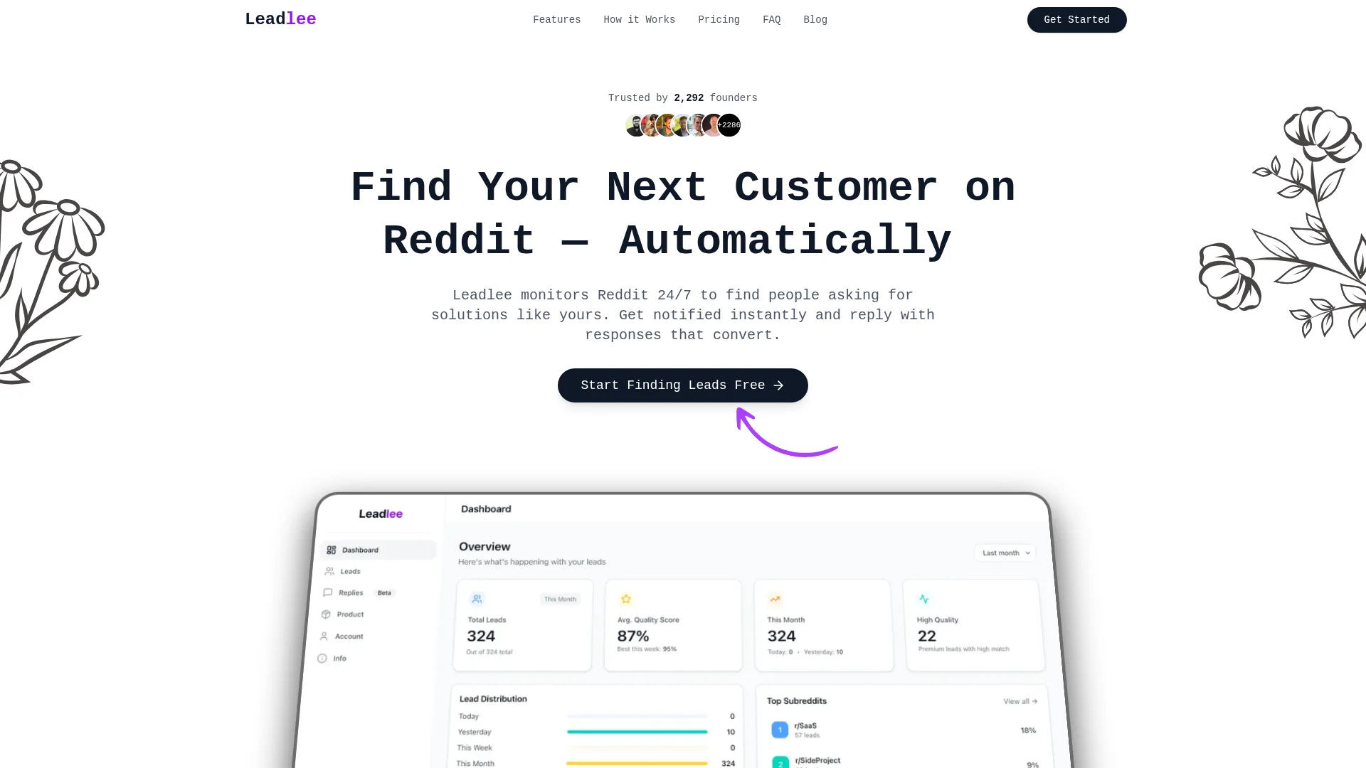 About Leadlee : Leadlee Leadlee - Find Your Next Customer on Reddit is a free Reddit lead generation tool that monitors Reddit 24/7 to find people asking for solutions like yours, then sends instant notifications with AI-generated replies.