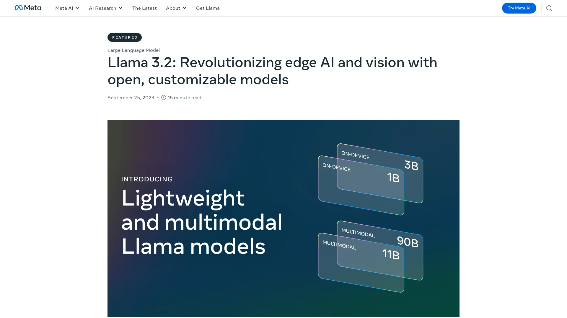 Today, we’re releasing Llama 3.2, which includes small and medium-sized vision LLMs, and lightweight, text-only models that fit onto edge and mobile devices.