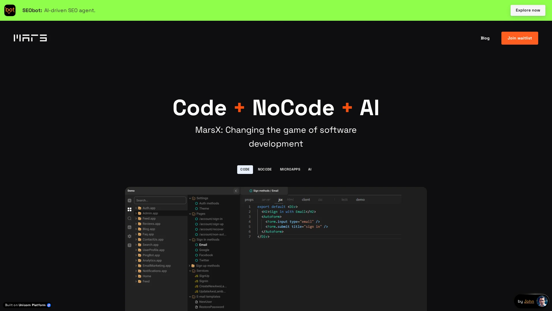 About Mars Ai : Mars AI MarsX is a dev tool that unites AI, NoCode, Code, and MicroApps to build SaaS tools in days. This AI-powered coding platform accelerates development with its intuitive interface and cutting-edge technology.