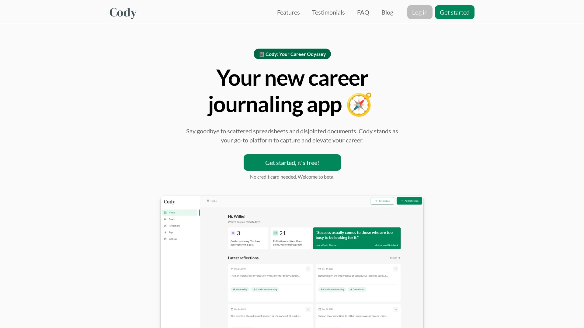 About Mycody : Mycody is a personal career companion that helps users navigate their professional journey by capturing achievements, learning from challenges, and gaining insights from self-reflections.