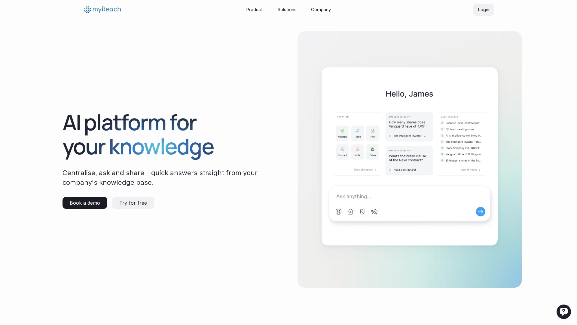 About Myreach : about us: Myreach myReach provides AI solutions tailored to businesses, simplifying information access and customer service through seamless processes and 24/7 AI conversations.