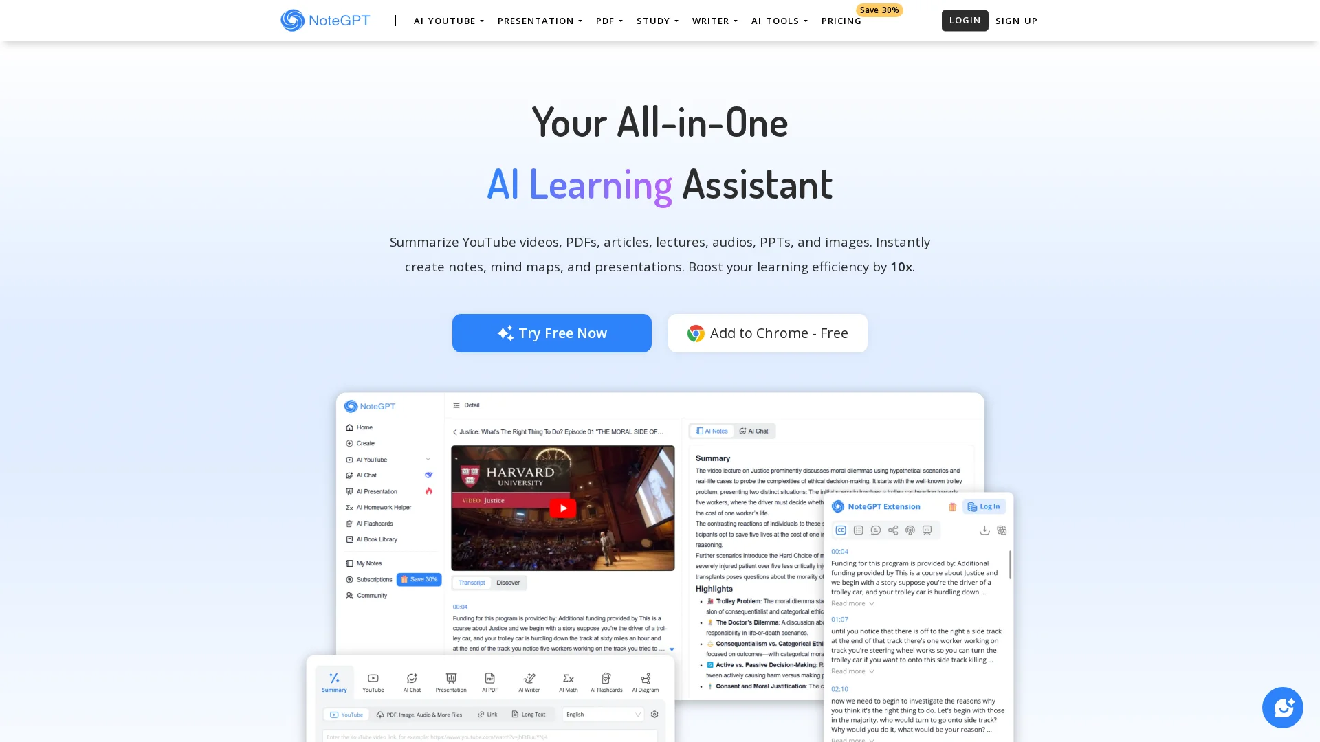 NoteGPT: Boost learning efficiency by 10x with our advanced Summarizer and Generator tools. Specializing in YouTube Video Summarizer and PDF Summarizer, NoteGPT also supports various other content types. Save key insights as personal notes and build your AI-powered notes library for seamless knowledge management.