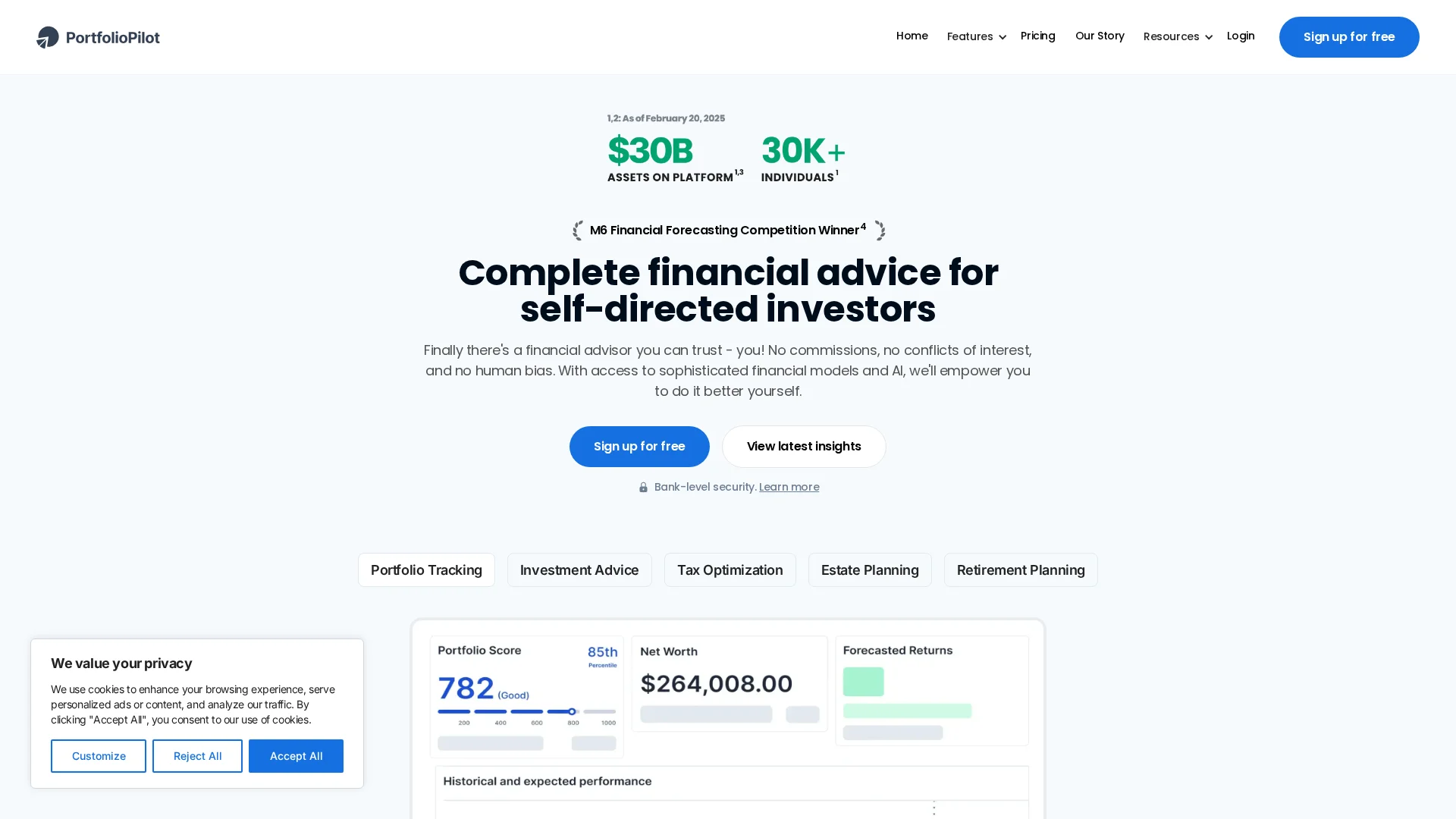 PortfolioPilot helps you track your investments, optimize taxes, and get AI-powered financial guidance. Free to start and built for long-term investors.