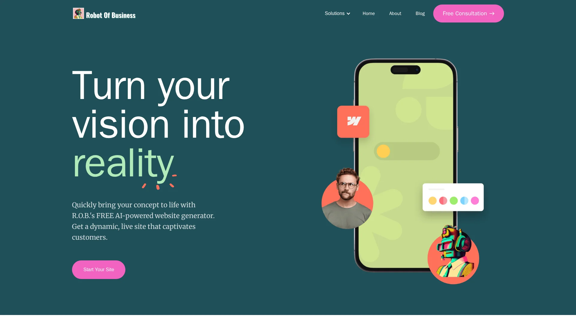 About R.O.B. : Launch your startup's website instantly with R.O.B.'s AI-powered Website Builder. A free platform for quick site creation, ideal for entrepreneurs and small businesses.