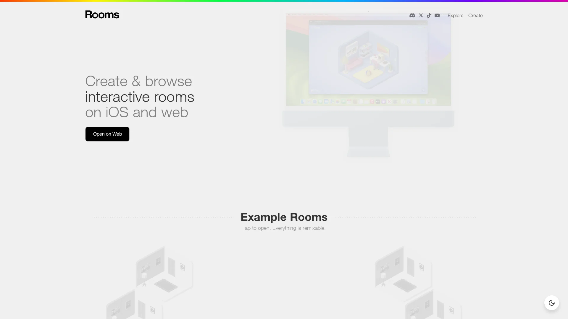 Rooms is a collection of user-generated 3D spaces and a creative tapestry of quirky games, tranquil havens, and clever themes. Available for free on iPhone, iPad and desktop web.