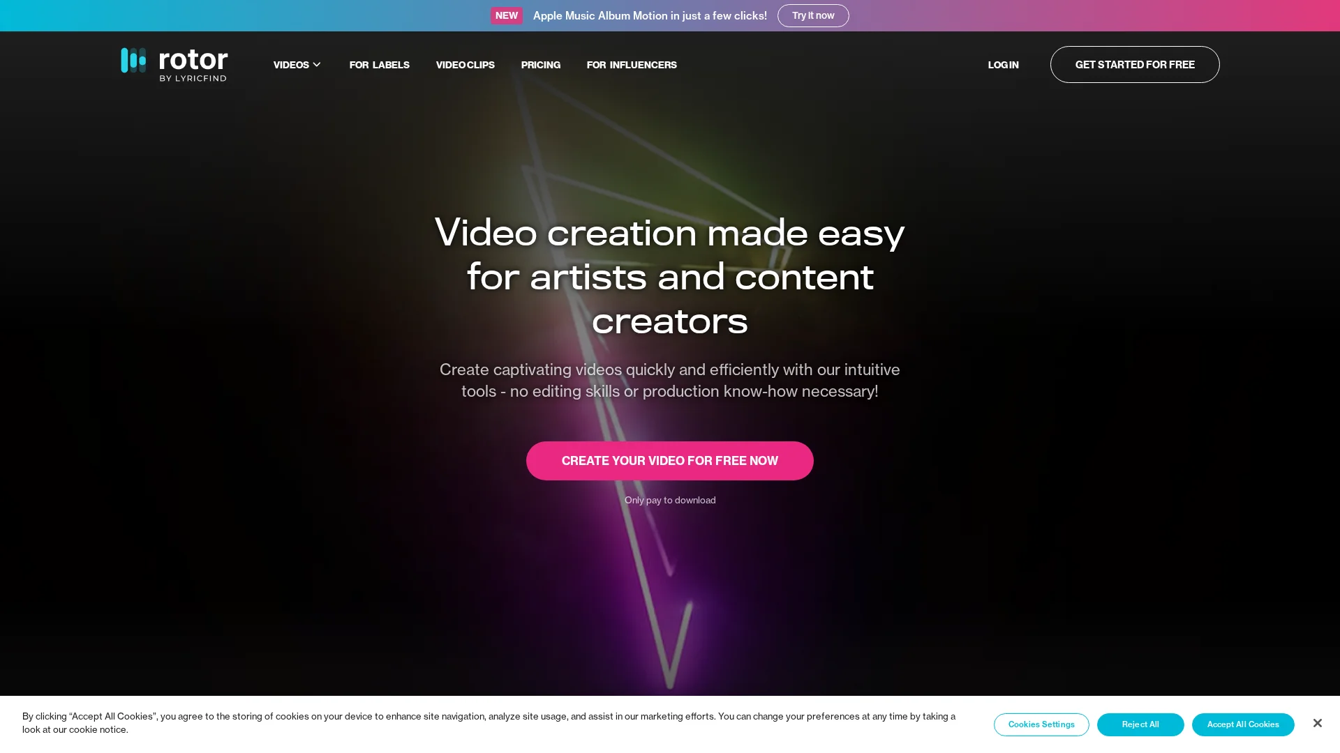 About Rotor Videos : Rotor Videos is an innovative music video creator for musicians. With Rotor Videos, artists can craft captivating music videos, promotional content, and engaging visual experiences for their fans. By leveraging this powerful tool, musicians can elevate their brand and showcase their artistry.