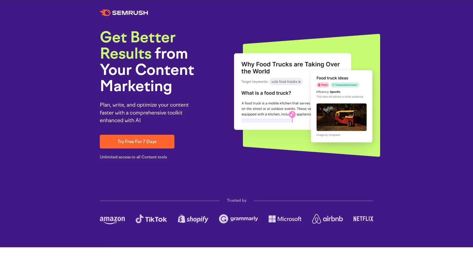 About Semrush Content Toolkit : Semrush Content Toolkit is a comprehensive content marketing tool enhanced with AI, designed to help you write, optimize, and analyze content faster and more effectively.
