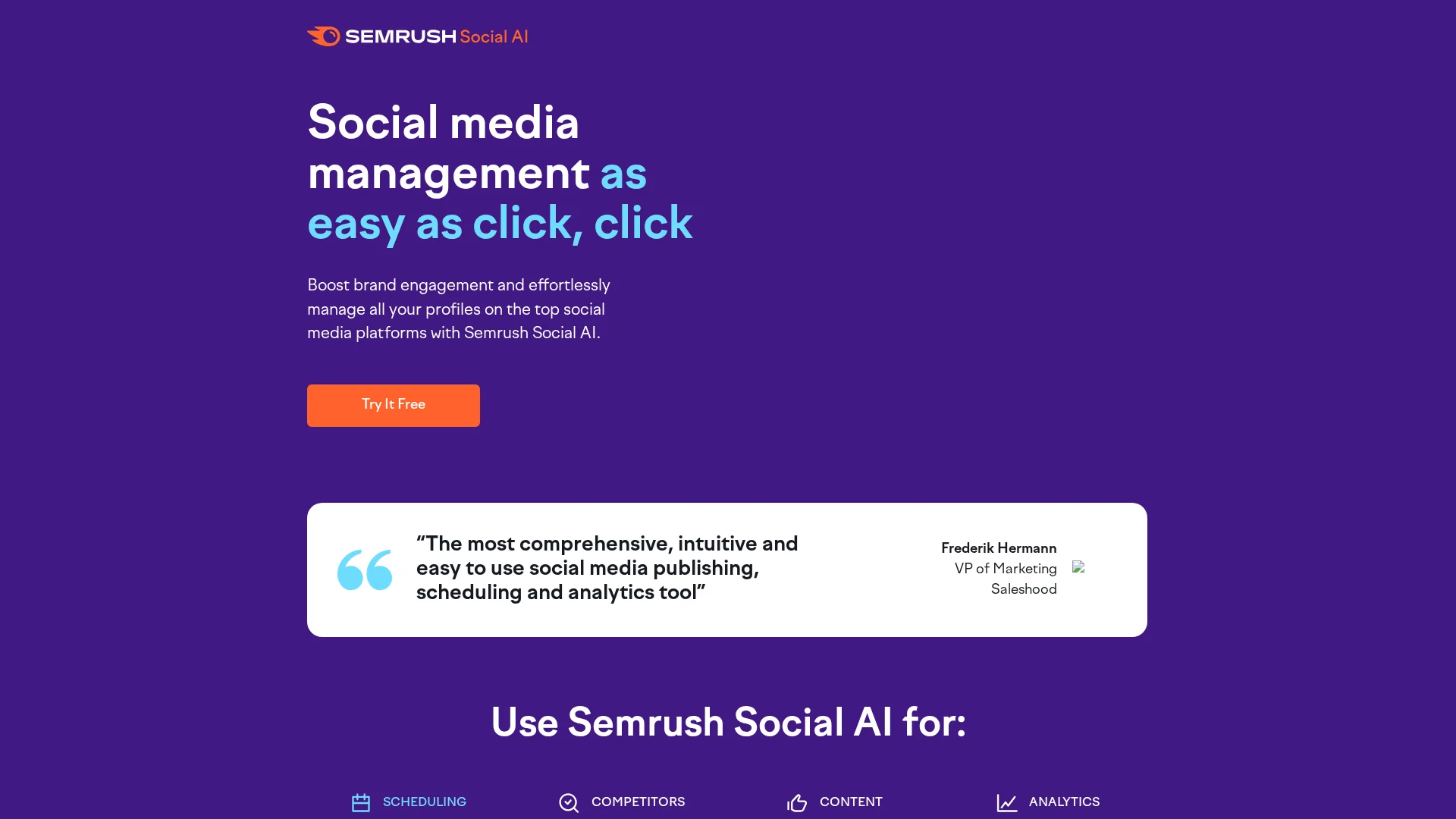 Semrush Social is your one-stop solution for effortless social media management. Ideal for small businesses, solopreneurs, and social media managers.