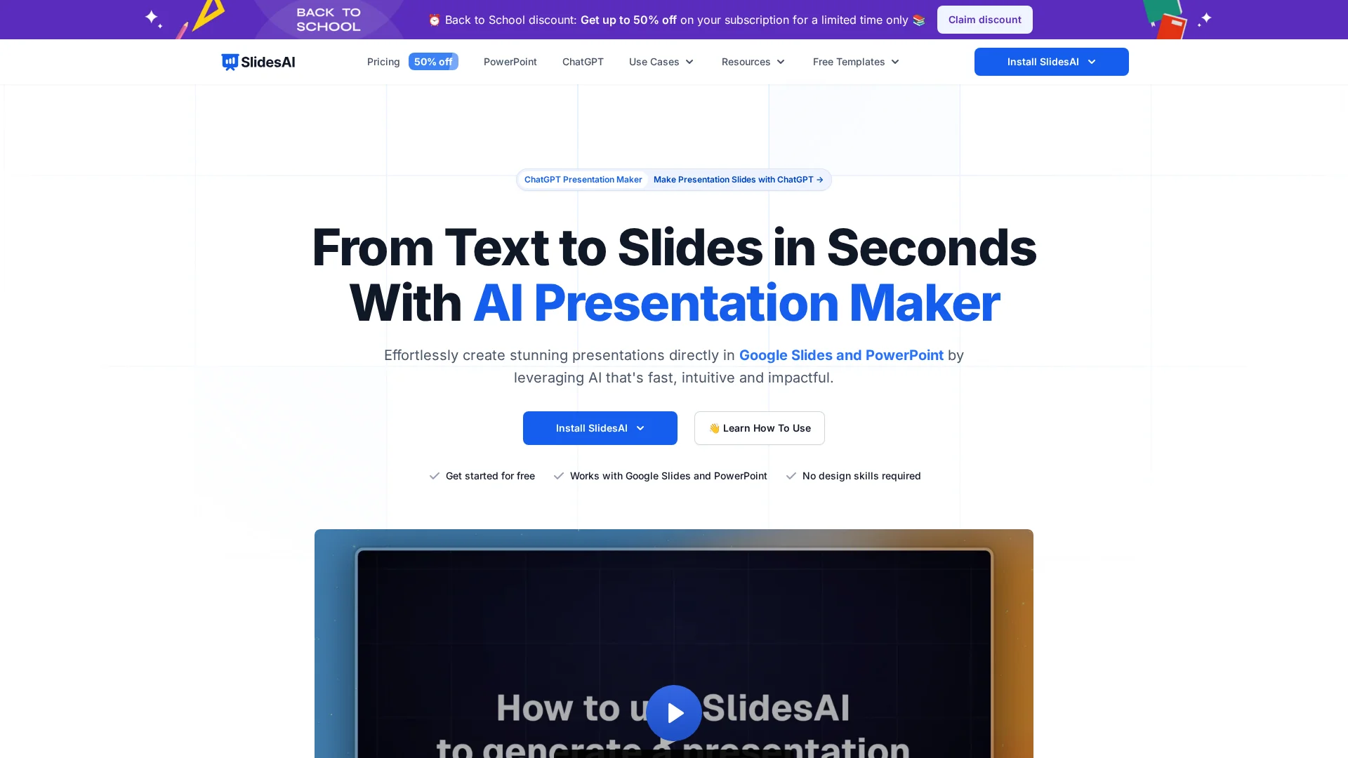 About Slidesai : SliesAI is a free AI presentation maker and Google Slides generator that creates stunning presentation slides in seconds. Users can instantly turn text into slides, making it perfect for teachers, students, and professionals.