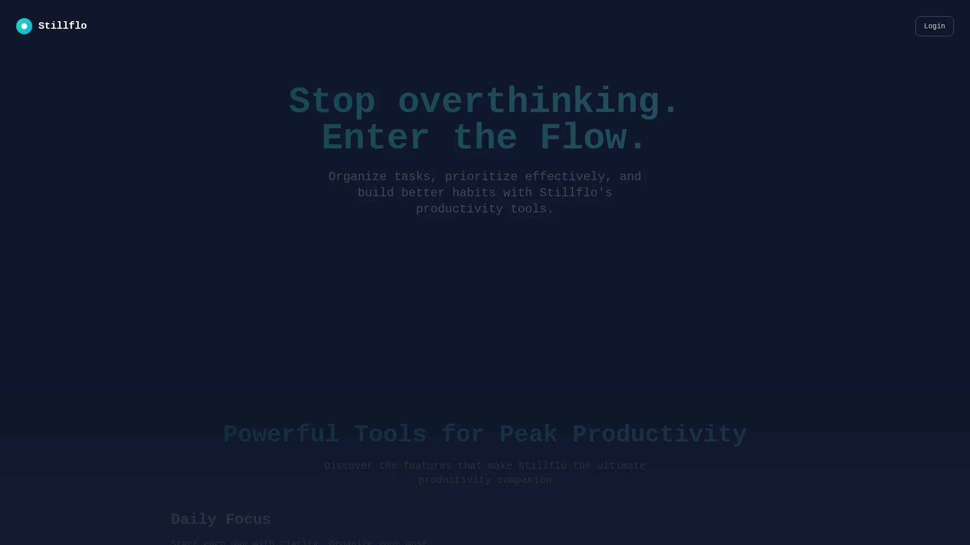 Enter the flow with Stillflo - a comprehensive productivity suite featuring Eisenhower Matrix task prioritization, daily focus planning, personal notes, and idea management. Boost your productivity and stay organized.