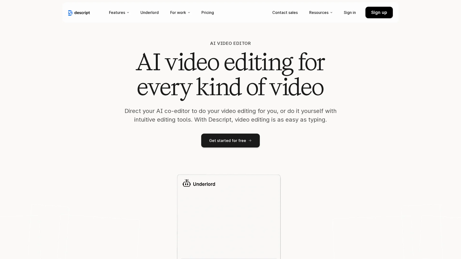 About Underlord By Descript : Underlord is a comprehensive AI video and podcast editor from Descript, designed to simplify editing processes for creators and teams. The platform offers transcription, editing, and publishing capabilities in one tool, with free trials available and powerful upgrades for creators. With its ease of use and robust features, Underlord is an ideal solution for those looking to streamline their content creation workflow. Noneurl: None