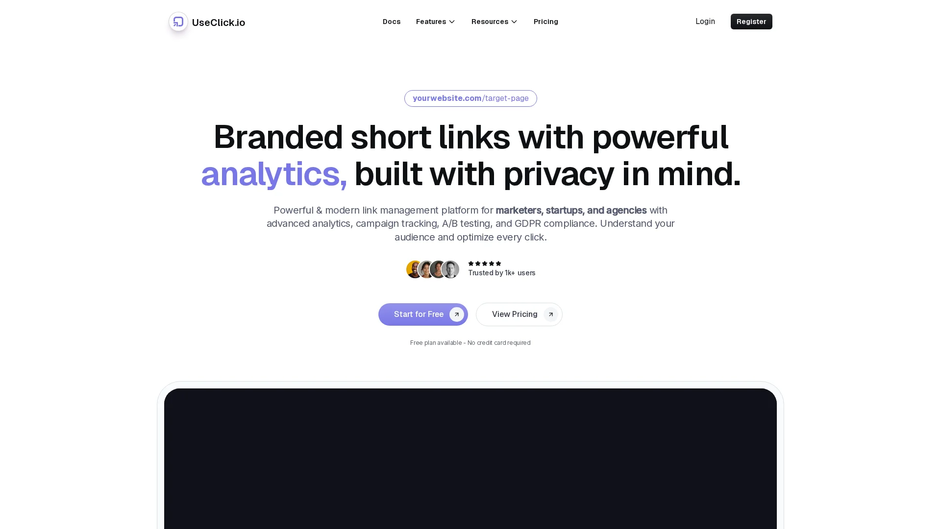 About Useclick.Io : UseClick.io offers a privacy-first link tracking and click analytics platform. Track links, analyze clicks, and understand performance drivers.
