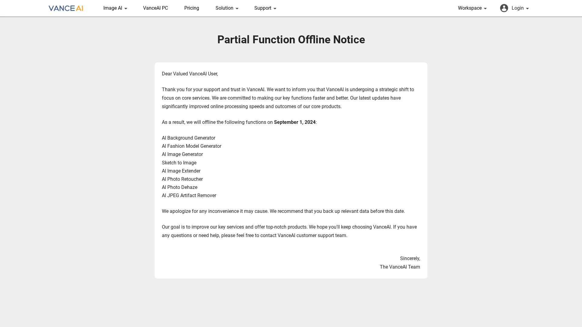 Notify users of changes to partial product features in detail.