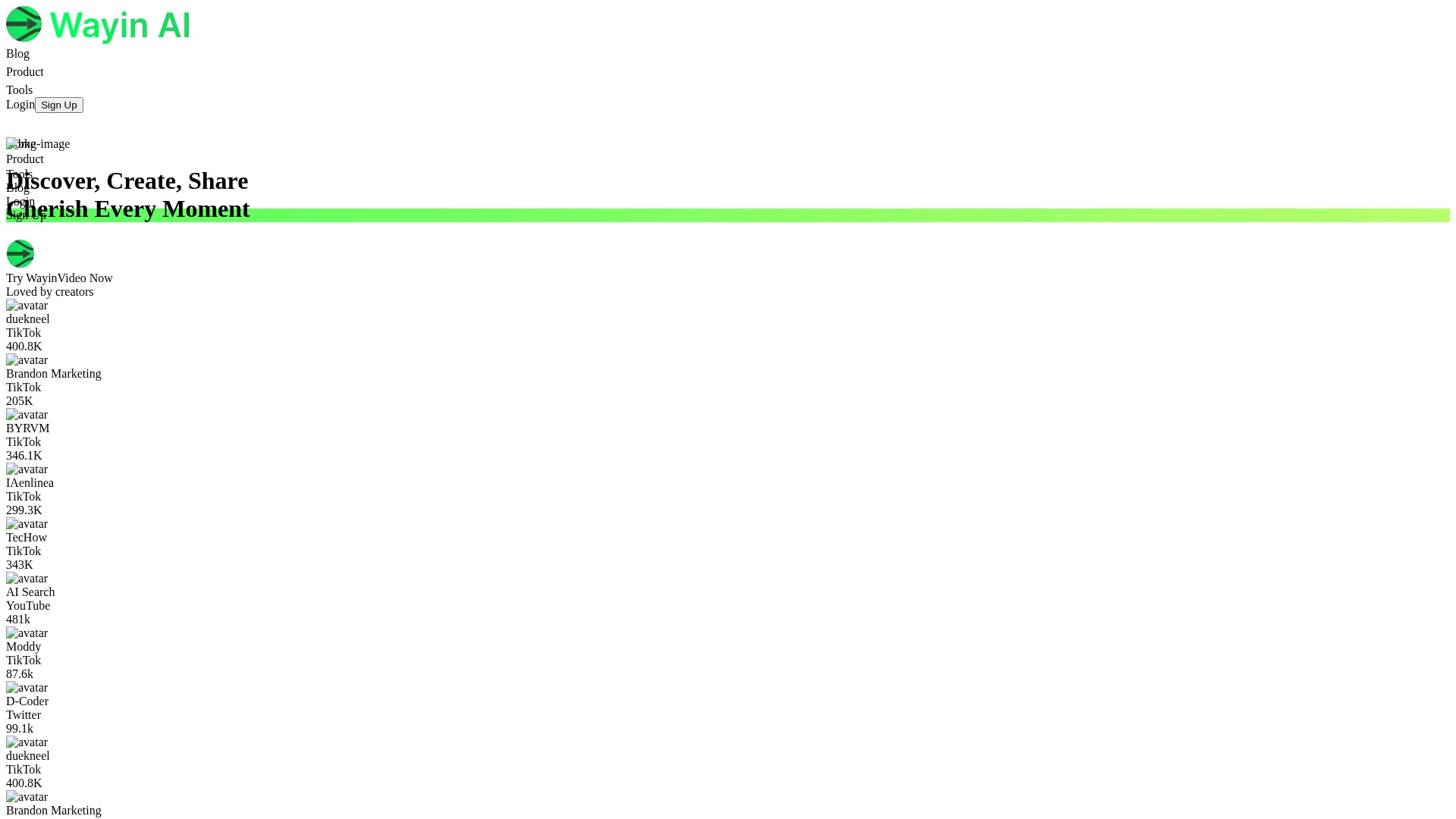 About Wayin Ai : Wayin Ai Discover, Create, Share is a utility for cherishing every moment. It helps users discover, create, and share content.